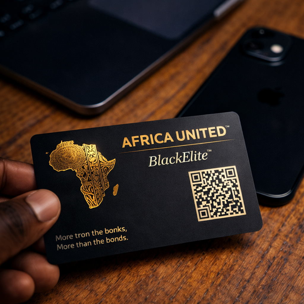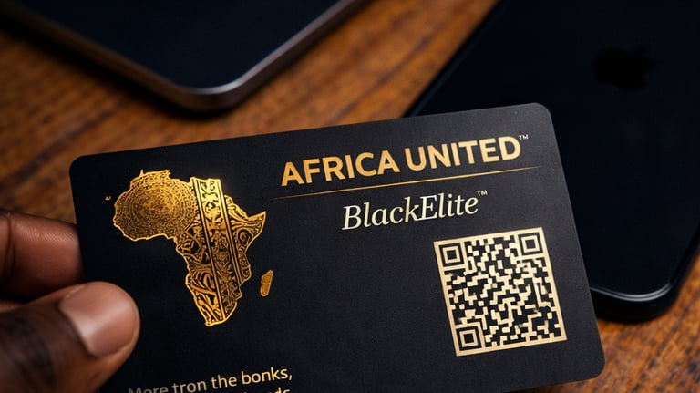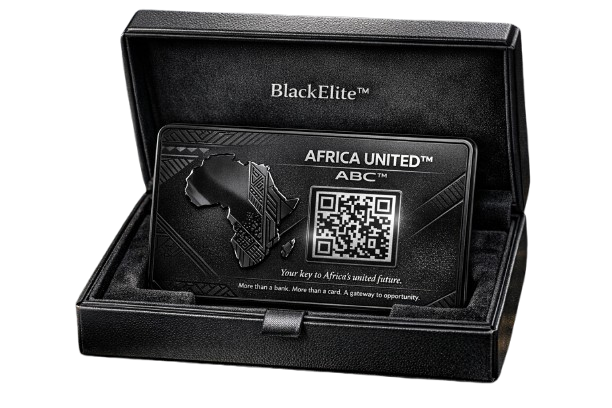 The BlackElite™ Physical Edition of the AFRICA BUSINESS CARD™ (ABC™) is the prestige, tangible version of the AFRICA UNITED™ membership credential. Crafted in matte black metal, it represents the highest tier of institutional and continental identity within the AFRICA UNITED™ ecosystem.